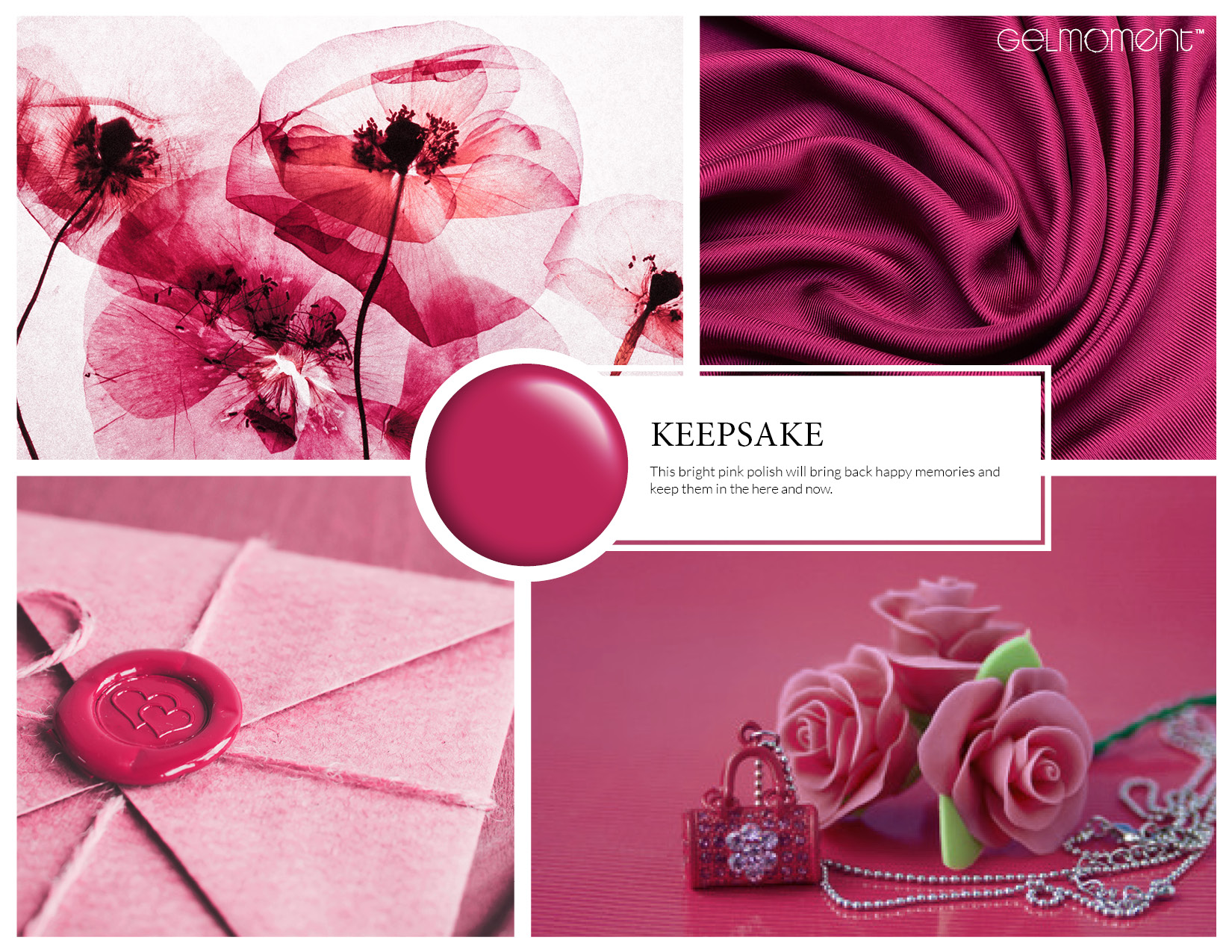 Raspberry pink. Medium-dark. Opaque. Warm undertone.